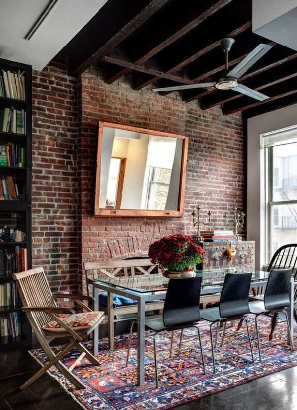 Стиль лофт тоже вполне допускает использование ковров в качестве настенного декора.