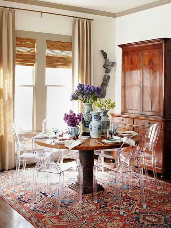 Фото с сайта hodremonta.ru.Не бойтесь смешивать материалы, цвета и стили для создания неординарного и динамичного интерьера. И помните: ни один современный ковер не сможет придать вашему дому ту особую энергетику, которая свойственна винтажным вещам.