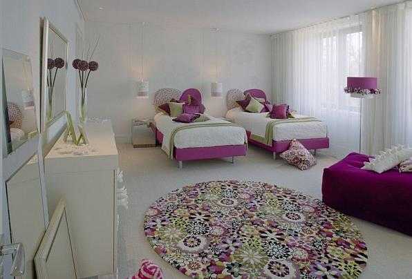 Еще один пример использования настенного ковра в детской комнате, на этот раз в розовых тонах – для девочки.