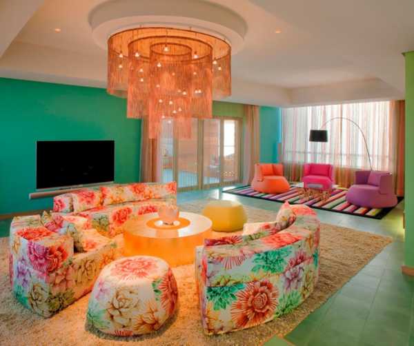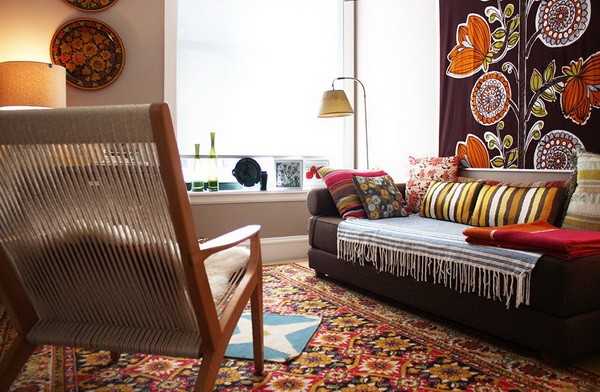 Красочный яркий ковёр в интерьере комнатыОсобенности яркого ковра