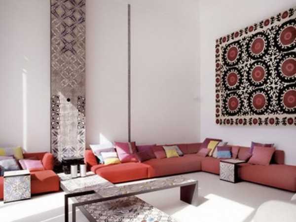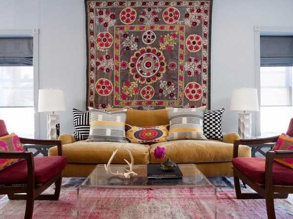 Во многих этнических интерьерах ковры на стене являются неотъемлемой частью интерьера.