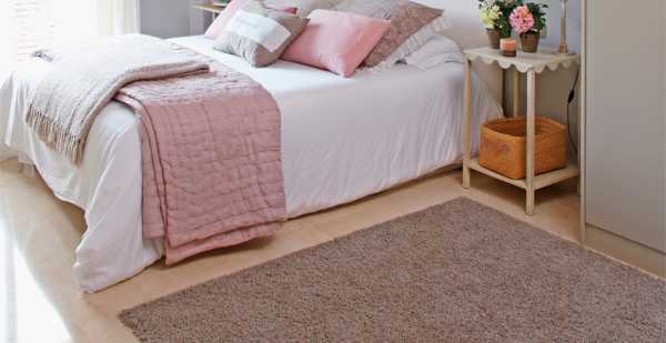 Изделия, подобранные на пол или стену, должны гармонировать с оттенком обоев и мебели: в спальне желательно использовать бежевые или другие пастельные цвета.