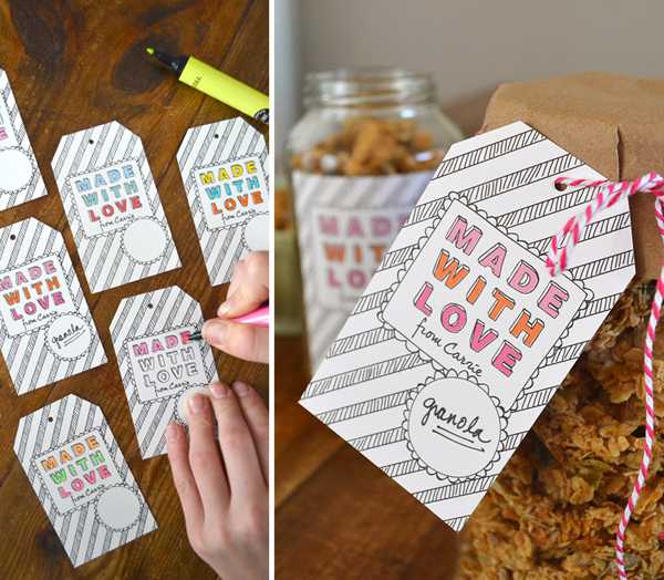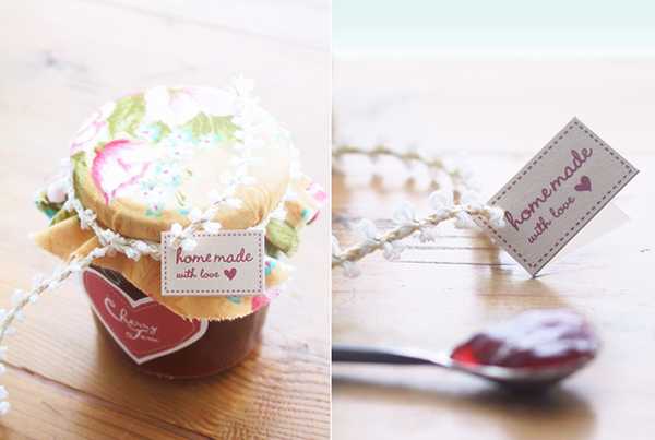 Вот уже пример посложнее в реализации — нужно изготовить симпатичные наклейки, подарочные бирки, подобрать ткань и тесьму. Ну очень сладко!