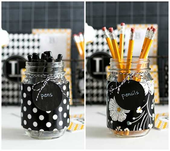В банках можно хранить не только крупы, макароны и специи, но и всякие побрякушки. Например, в стеклянной банке прекрасно смотрится косметика, канцелярские принадлежности, бижутерия, кисти для макияжа, гигиенические принадлежности, швейная фурнитура. Смотрится такой органайзер очень стильно, украшать его придется по минимуму.