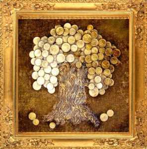 На новоселье из денег можно соорудить прикольный подарок в виде дерева.