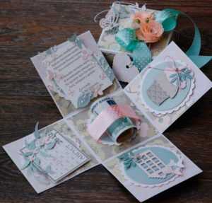 Из бумаги всегда можно сделать романтический коллаж с вашими общими фото, что будут радовать приятными воспоминаниями. Для этого сконструируйте из бумаги «гармошку» или более сложную геометрическую фигуру, на которую наклейте нужные фото и декорации.