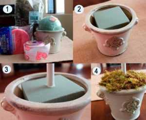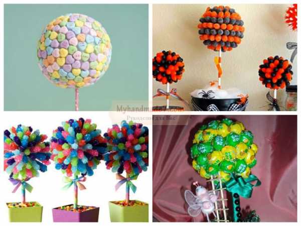 Теперь давайте сделаем сладкий подарок на день Рождения своими руками для ребенка, букет будет не так интересен для маленького сладкоежки. Поэтому мы сделаем топиарий из конфет. Только хочу сразу заметить, что не стоит оставлять ребенка без присмотри, чтобы он не объелся сладким. Такие топиарии отлично подойдут для оформления сладкого стола на утреннике по поводу дня рождения.