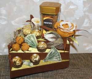Но сами по себе конфеты или шоколадные композиции – вкусный, но неинтересный подарок. Если вы хотите по-настоящему удивить приятеля или родственника, подойдите к заданию творчески и оформите сладостный подарок своими руками.