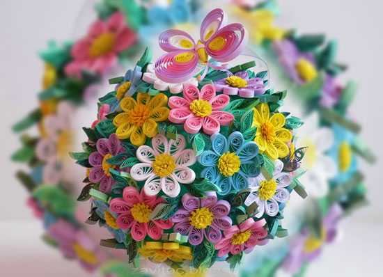 Это могут быть оригами лилии или другие цветы из плотной бумаги, внутри которых можно спрятать приятное поздравление и послание или интересную вещицу. Несложно сделать и розы из бумаги для декорирования из отдельных круглых листов, собирая из вокруг «сердцевины» так, чтобы своим видом они напоминали розу. Для создания цветов часто используют жатую бумагу или технику «квиллинг» — создание форм и изображений, закручивая и клея полосы из бумаги.