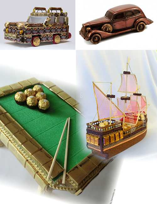 - Если мужчина мечтает о новом автомобиле, сделайте из конфет машину и подарите мужу.