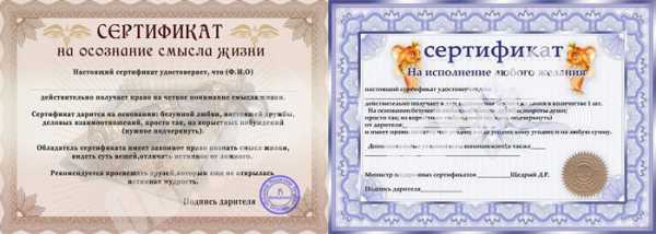 Как правило, такие сертификаты дарят исполнение желания, либо предоставляют разрешение что-нибудь сделать. Желание и разрешения вы можете вписывать на своё усмотрение.