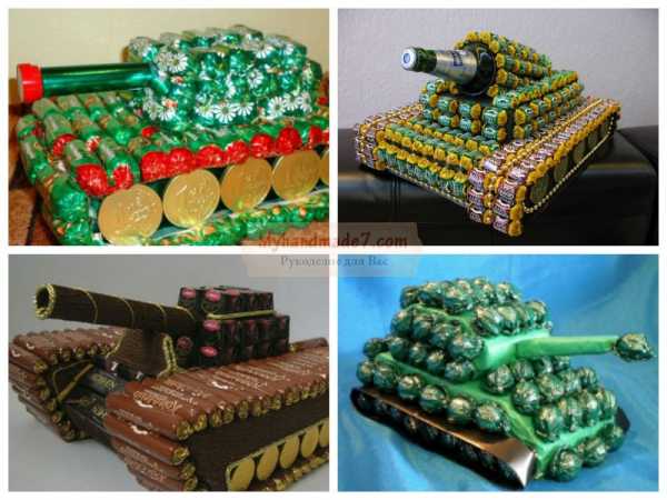 - Любителю поиграть в танки подарите на 23 февраля танк из конфет.