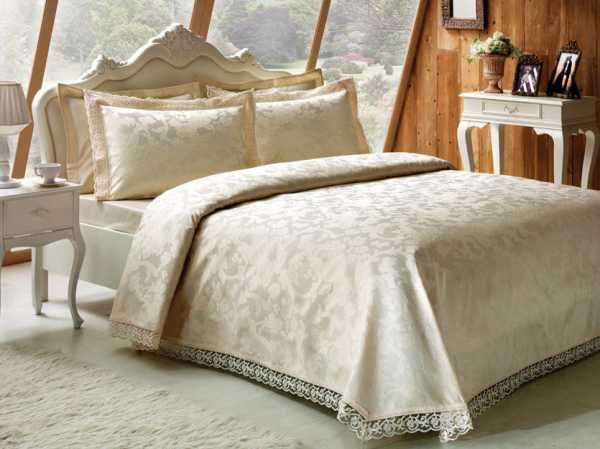 Чтобы пошить долговечное покрывало, лучше остановить свой выбор на атласе, крепе или шелке с примесью эластана. Сатин, тафта или вельвет также станут достойным материалом для красивого покрывала.