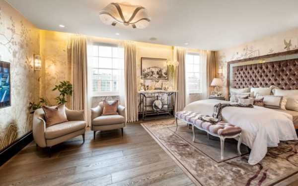 Визуально уменьшить слишком просторную спальню, сделав ее более уютной, позволяют покрывала с крупными рисунками, декорированные рюшами или кисточками.