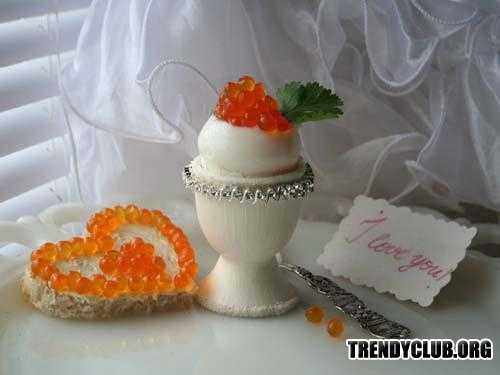 Для любителей яичницы, можно ее предложить в следующем варианте – вырезать в кусочке хлеба сердечко, поджарить хлеб с одной стороны, перевернуть его и поджарить вместе с яйцом с другой: