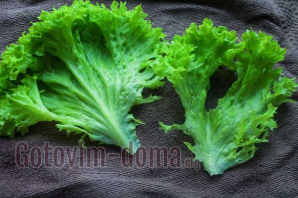 6. Салатный лист промываем под проточной водой, обсушиваем на полотенце. Перед подачей рвем на небольшие части.