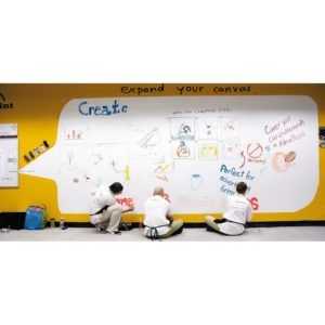 В условиях офиса удобство стены, покрытой маркерной краской, заключается в том, что у сотрудников отсутствует необходимости постоянно стирать сделанные ранее рисунки или чертежи, освобождая место для новых схематических изображений.