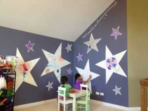 Такая стена с успехом заменяет привычную доску для письма и рисования мелом. С ее помощью значительно увеличивается пространство для выполнения школьных заданий или проведения уроков художественного мастерства.
