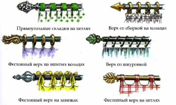 Чтобы разобраться, как прикрепить шторы к карнизу, следует познакомиться с основными методами их навешивания.