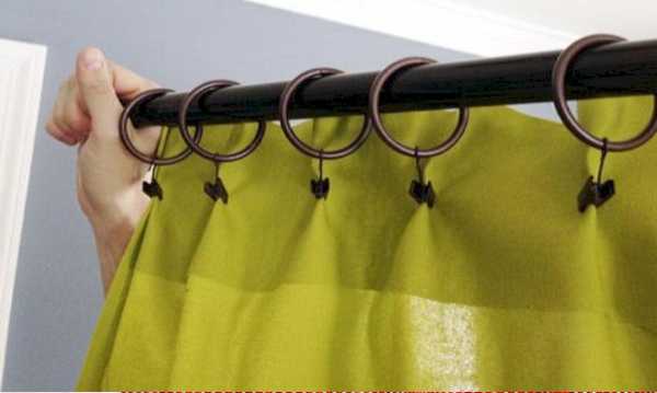 Это один из самых популярных видов крепления. Крючки, металлические или пластмассовые, крепятся к шторам (чаще всего с помошью шторной ленты), а затем прицепляются к кольцам на карнизе. С помощью такого крепления можно создать интересную драпировку. Шторы на кольцах довольно универсальны и удачно вписываются в разные стили интерьера.