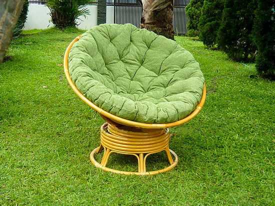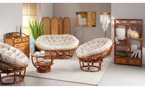 - папасаны или мамасаны — эта разновидность является особо комфортной и уютной. У них спинка, сидение, подлокотники соединены и образуют округлую полость с углублением в середине. Кресло папасан имеет очертание полусферы на каркасе из ротанга, бывает статичным или вращающимся. Сидение мамасан удлиненное, в нем могут поместиться 2 человека. Плетеные изделия дополняются мягкими подушками, они удобны для сидения и даже сна.