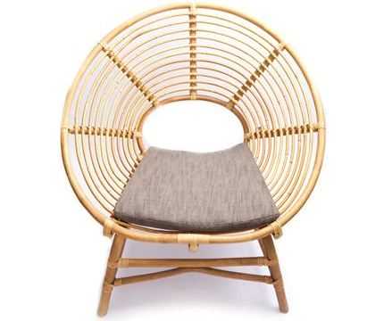 Сиденье и спинка этих образцов выполнены в виде единой круглой подушки, которая устанавливается на плетеное из ротанга основание.