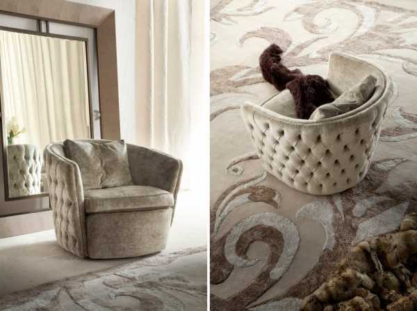 Элегантное кресло с полукруглой спинкой или круглым сиденьем великолепно дополнит интерьер в классическом стиле. Это может быть как массивная модель с солидной отделкой из кожи или бархата, так и легкое изящное кресло на тонких ножках.