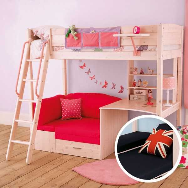 - если размер детской небольшой, то можно приобрести чердак. Он точно впишется в комнату. Другие элементы мебели для спальни в виде комодов, шкафа покупать не потребуется.