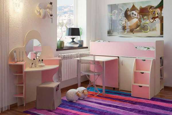 Посмотрите фото с видами двухъярусных конструкций, предназначенных для девочек.
