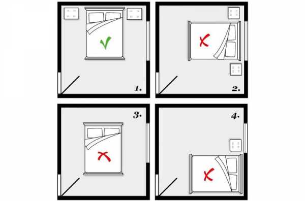- расположение кровати в спальне должно обеспечивать свободный доступ для обоих партнеров;