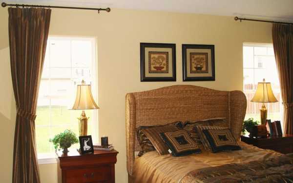 Идеальный вариант для установки кровати в спальне – изголовьем к несущей стене, где нет ни окна, ни двери. По отношению к постели дверные и оконные проемы должны располагаться сбоку, лучше на стороне изножья. Если кровать небольшая, то можно разместить ее изголовьем в угол (по диагонали) – такое расположение подходит для комнат, где вход напротив окна.