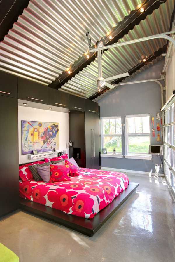Обычная кровать удобна тем, что под ней можно организовать выдвижные ящики. Такое место для хранения вещей значительно экономит место. При желании иметь что-нибудь оригинальное можно соорудить подиум. Эта современная конструкция способна увеличить общее пространство. Достигают такого эффекта при помощи точечной подсветки и ступенек. Выгоден подиум и другими возможностями. Например, внутри него создают объемные хранилища. Существуют и варианты дизайна, где вместо кровати используют матрас. Однако он должен быть меньше определенной для него территории.