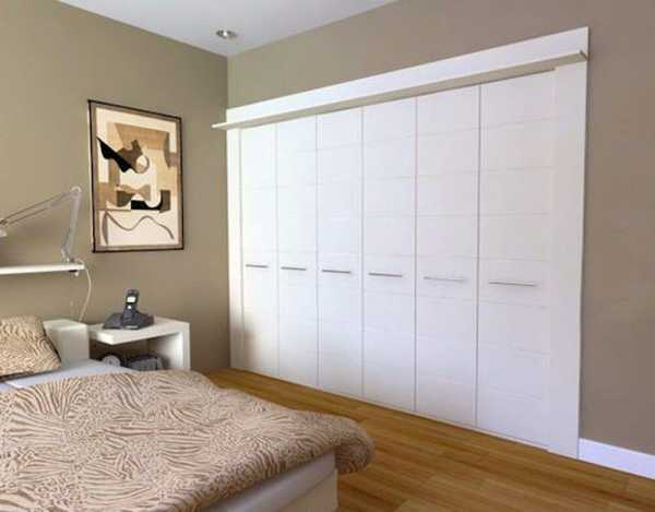 Встроенные кровати можно убирать не только в шкаф, но и в стенную нишу, его имитирующую. Каркас при этом крепится непосредственно к стене, а тыльная сторона кровати копирует дверцы шкафа.