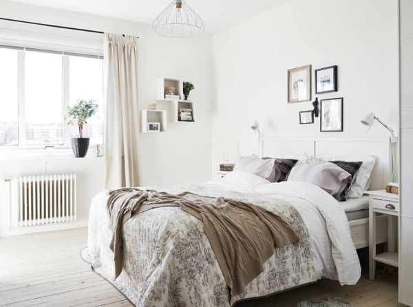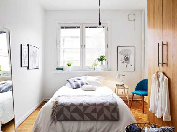 Адаптированный скандинавский стиль – это не только одна лишь эстетика, но и эргономика. Последнее очень важно для владельцев маленьких спален. Если вам не хватает места, присущая скандинавскому стилю простота, использование нейтральной цветовой палитры с преобладанием белого цвета, отказ от лишних аксессуаров и декора действительно являются большим преимуществом! Впрочем, благодаря использованию ковриков, деревянных прикроватных тумбочек и естественной вентиляции, ваша маленькая спальня не будет казаться «стерильной» и тоскливой.