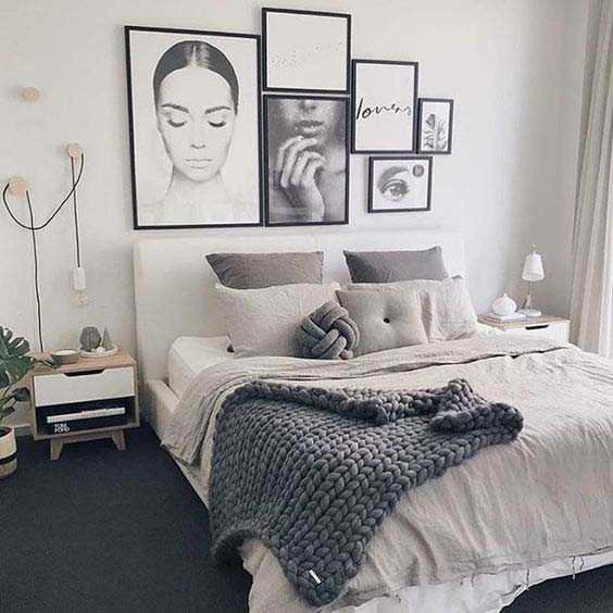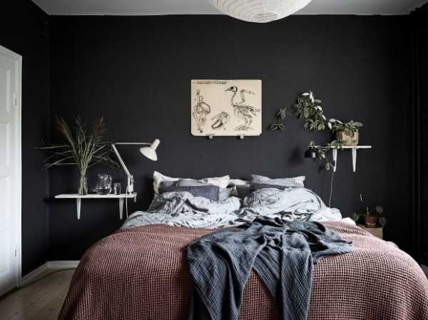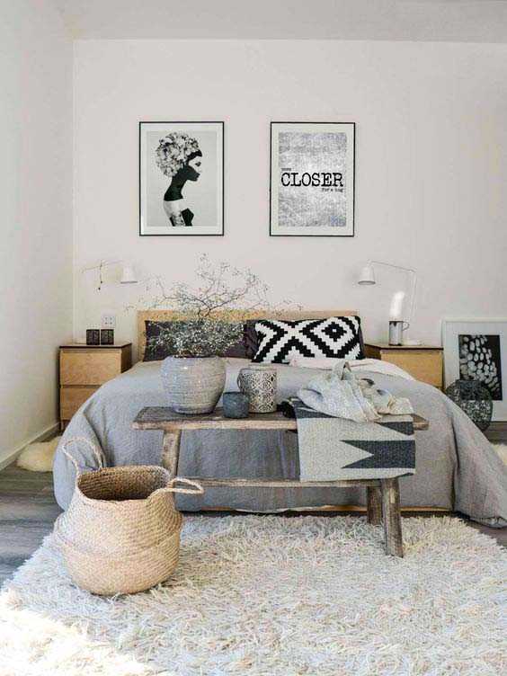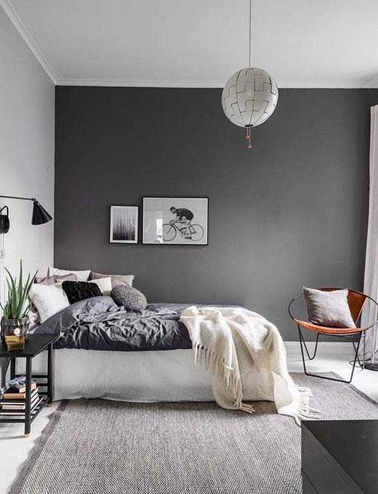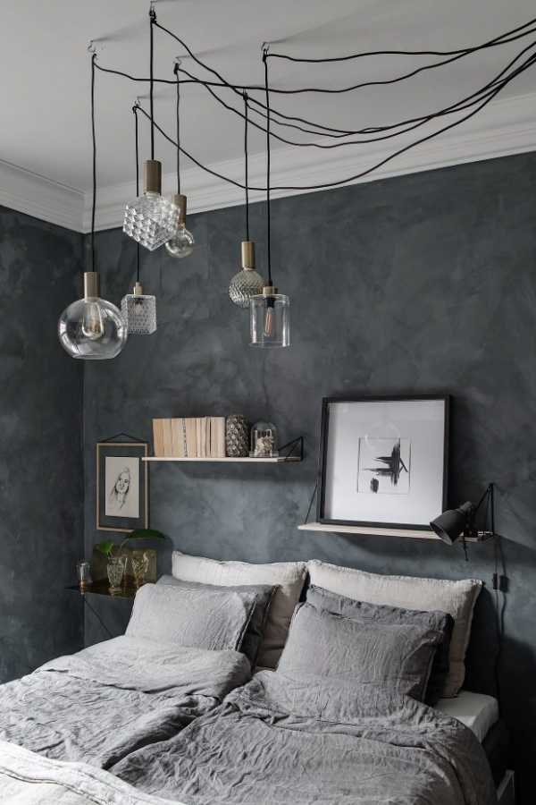 В то время как белый цвет в скандинавском интерьере не нуждается в представлении, не стоит недооценивать важность черного и серого. Черный помогает определить и выделить архитектурные особенности вашей комнаты и обеспечивает идеальный визуальный баланс. Оттенки серого цвета усиливают этот, казалось бы, монохроматический внешний вид и придает скандинавской спальне утонченную ауру. Используйте этот подход, дополнив его простыми прямыми линиями, полками со скрытым креплением и шкафами, чьи очертания теряются на бледном фоне спальни!