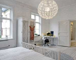 Освещение в спальне играет не последнюю роль. Спальня — это прежде всего место для отдыха. Поэтому верхнее освещение должно быть мягким и спокойным. Слишком яркие лампы в спальне ни к чему. Если вам нужно более яркое освещение, чтобы почитать книгу или поработать, лучше использовать дополнительное освещение в виде настольных ламп или бра. И конечно же, как и в любой другой комнате в скандинавских спальнях приветствуются свечи.