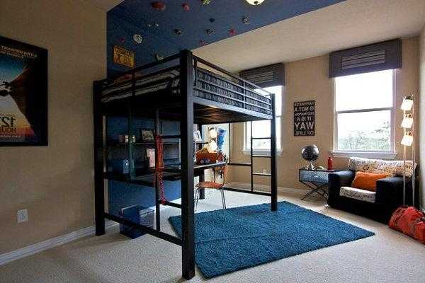 Для спальной комнаты ребенка от 12 до 18 лет, двухъярусная кровать как нельзя лучше решит проблему зонирования. Подросток сможет уединяться для сна на второй этаж, а учить уроки, читать книги ему будет удобно на первом этаже такой мебели. В этом возрасте так важно побыть наедине с самим собой, со своими мыслями.