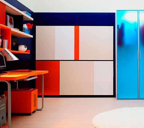 Отлично вписывается в интерьер кровать-трансформер, представляющая часть мебельного гарнитура в нейтральном стиле. Такая модель подойдет и для мальчиков, и для девочек: