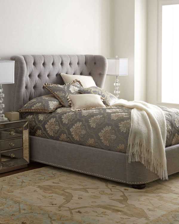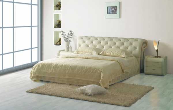 2. Материал для обивки. Это может быть ткань, как простая хлопковая или льняная, так и богатая велюровая — все зависит от общего стиля оформления спальни. Кроме того можно использовать кожу или более экзотические материалы.Однако стоит помнить, что в спальне уместны экологичные и «комфортные» материалы.