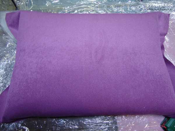 Если вы хотите сшить чехол для изголовья кровати, то необходимо сделать припуски по всем сторонам 1,5-2 см, сшить с изнаночной стороны детали, вывернуть и надеть на спинку. Наполнитель при этом способе можно закладывать после надевания чехла, особенно в том случае, если вы используете «мягкие» варианты: холофайбер, экофайбер, полиэфир и т.п.