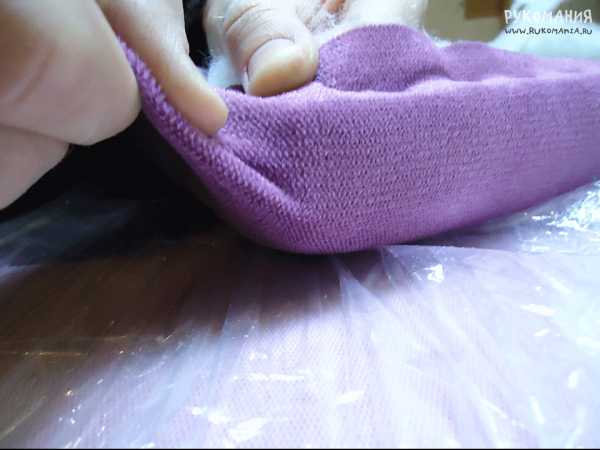 Накройте изголовье обивочной тканью: с каждой стороны должен остаться запас в 25-30 см.