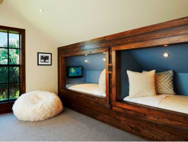 Очень часто в доме специально создаются ниши или углубления для размещения в них кроватей. Этот ход помогает серьезно сэкономить пространство в небольших комнатах. Такой вариант также поможет сделать помещение уникальным в своем роде.