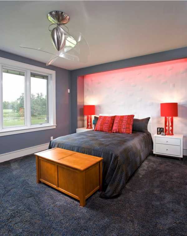 Специально используют цвета, контрастирующие с общим цветовым решением спальни.