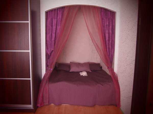 | Внутри углубления, чаще всего достаточно места для размещения, не только кровати, но и шкафа, книжных полок, телевизора и даже гардеробной. | Ограниченный выбор мебели, обусловленный четкой длиной и шириной конструкции. |