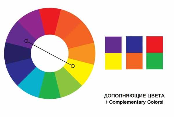 Контрастные цвета — это красочные антонимы. Вместе они смотрятся очень ярко, а иногда даже агрессивно. Как их подбирать для своей цветовой схемы, показано на рисунке, но не переусердствуйте, а то получите интерьер «страшно-глянуть-стайл»