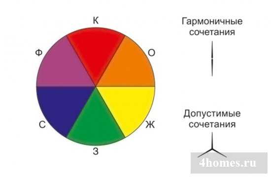 2. Цветовое колесо поможет не гадать на кофейной гуще, а очень быстро и правильно подобрать группу цветов, которые наверняка будут хорошо сочетаться между собой и составят прекрасный ансамбль красок в помещении.
