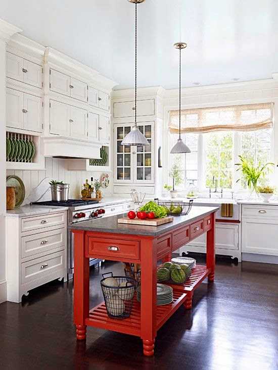 И ещё: помните о возможности приобретения или изготовления мобильных кухонных островов, которые можно перемещать от раковины к обеденному столу и т.д.