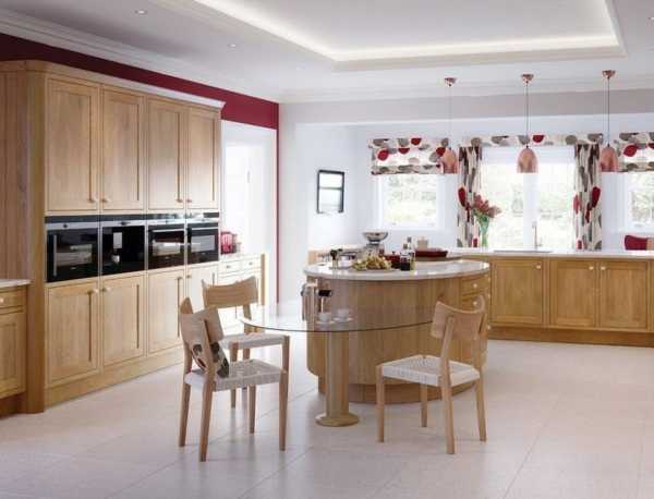 У дизайнеров существует следующее правило: какой формы кухня. Такой и остров. Иначе говоря, в прямоугольном помещении квадратный стол будет куцеватым, и наоборот. Для очень просторной кухни подойдет круглый или овальный стол в центре.