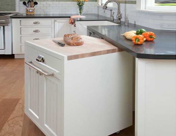 - Дополнительная рабочая поверхность и место для хранения, а его на кухне много не бывает;
