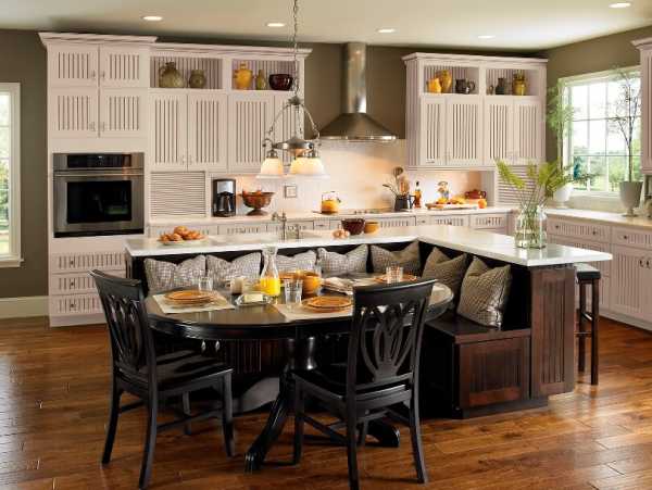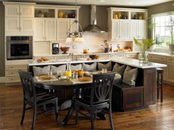 Если габариты комнаты позволяют, а сложности вас не пугают, можно смело приступать к реализации любых задумок. В результате у вас получится стильная, практичная и функциональная кухня.